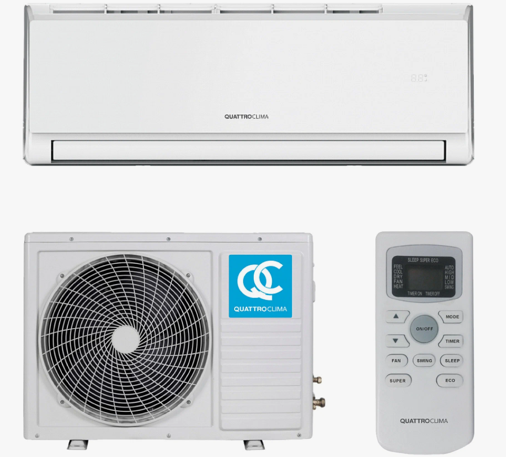 Настенный кондиционер QUATTROCLIMA обеспечит комфортный микроклимат в помещении в любое время года, а выполненный в стильном дизайне внутренний блок станет достойным дополнением интерьера. Режим «Турбо» позволяет быстро достичь заданных параметров температуры.