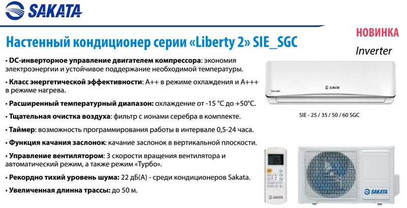 — Новая серия настенных кондиционеров Sakata станет находкой для тех, кому необходимо качественное оборудование, имеющее набор самых необходимых режимов и функций, за разумную стоимость.
